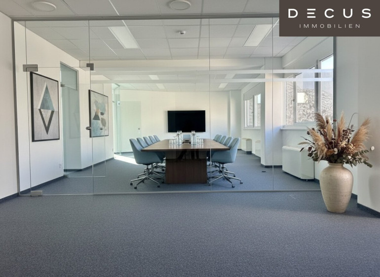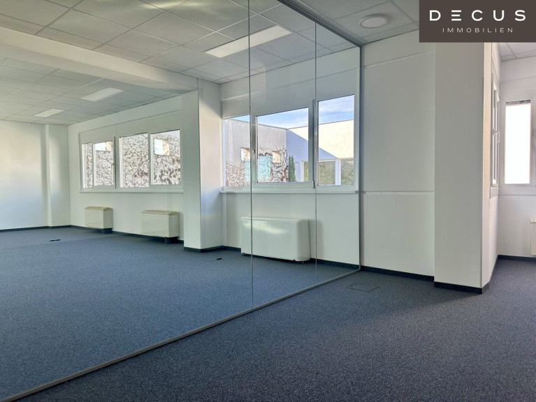 Die Büros bieten ein angenehmes und helles Arbeitsklima, durch die Glastrennwände erwartet Sie ein modernes Arbeiten im 22. Bezirk.
