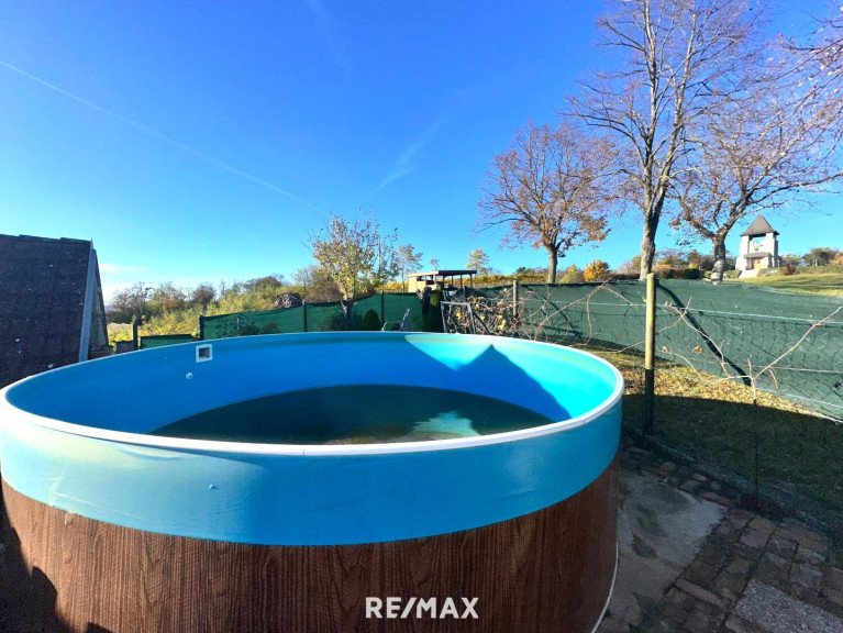 Das Grundstück bietet ausreichend Platz und lädt zum Verweilen im Außenbereich ein. Die ruhige Lage schafft eine idyllische Atmosphäre, die Entspannung und Privatsphäre garantiert. Eine Pool, Abstellraum, eine kellerröhre und eine kleine Werkstatt ergänzt das Angebot.