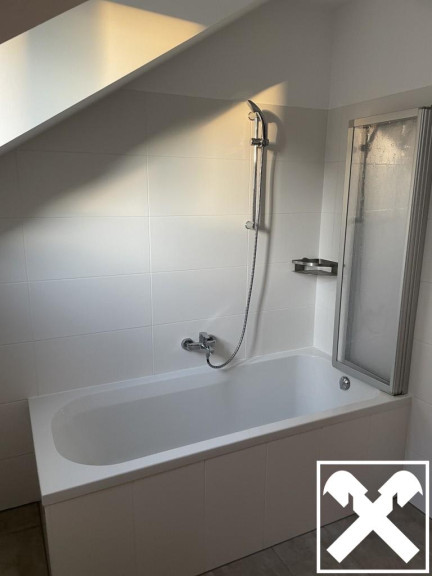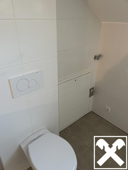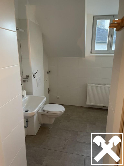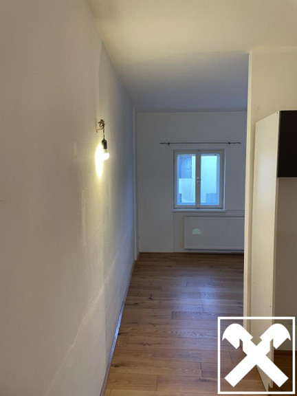 Wohn-Essbereich, 1 Schlafzimmer, Bad mit WC, Vorraum, 1. Stock, Kaution € 1.300,-.