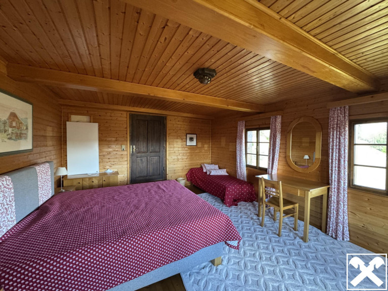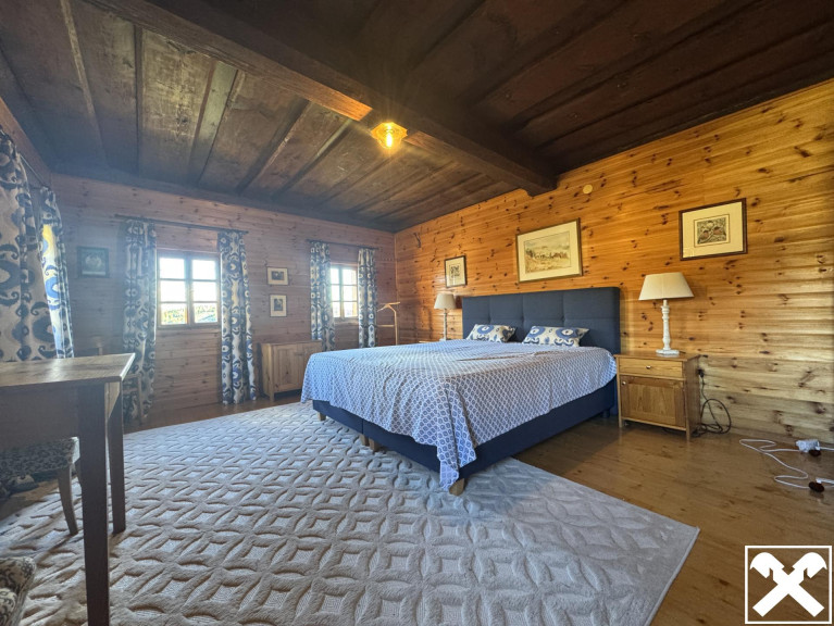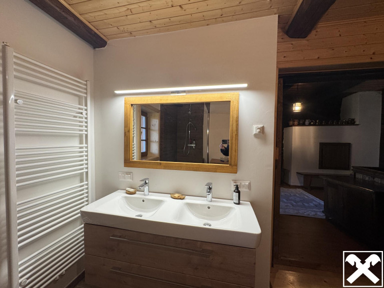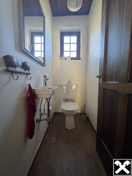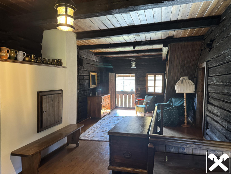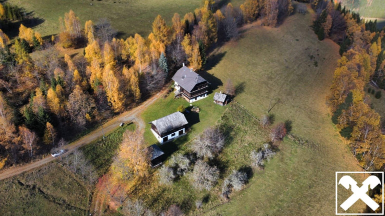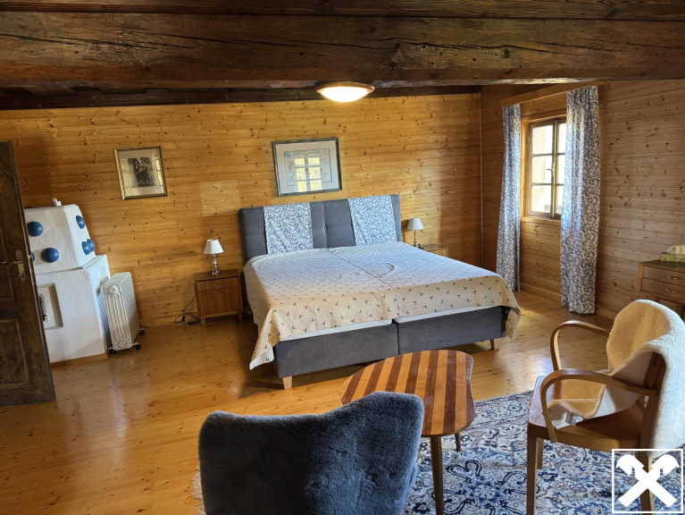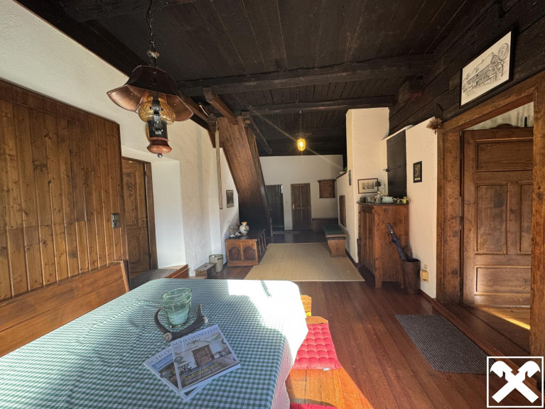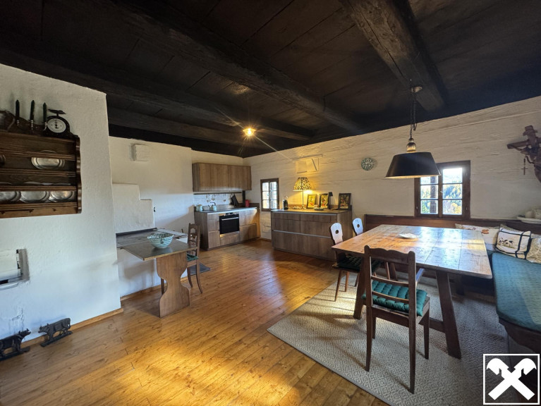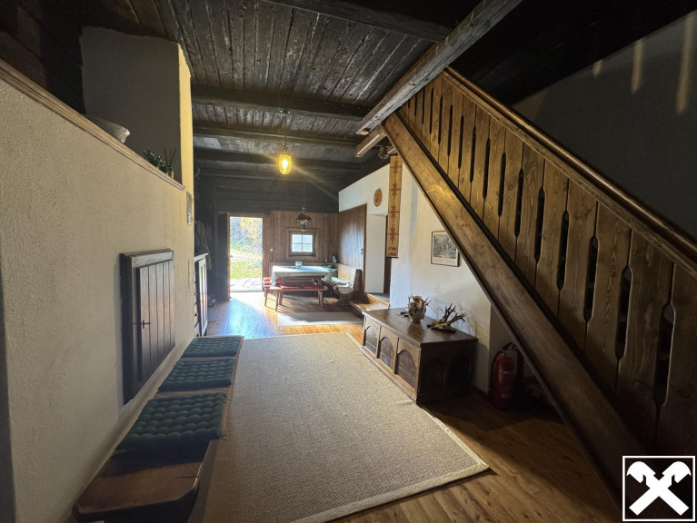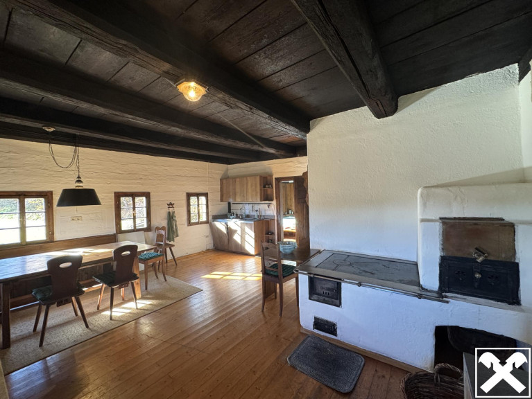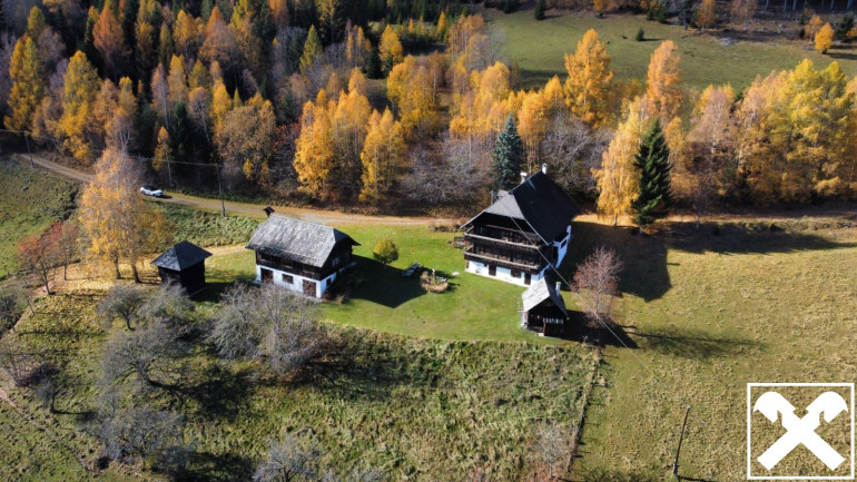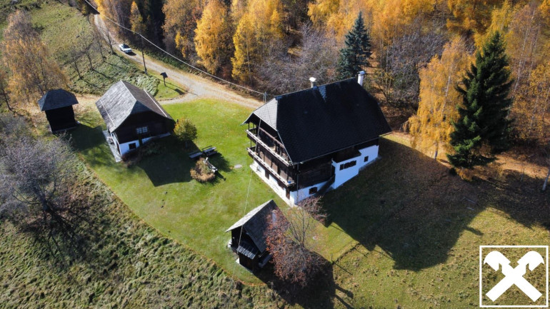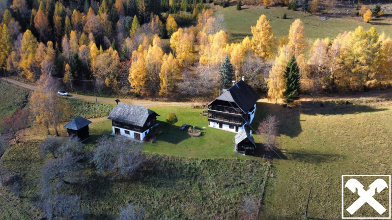 Das historische Bauernhaus, liebevoll renoviert und größtenteils im Originalzustand erhalten, strahlt authentischen Charme aus und bietet zugleich modernen Komfort. Ergänzt wird das Ensemble durch ein Nebenhaus, einen traditionellen Troadkasten sowie eine kleine Hütte, die sich ideal als Jagdunterstand oder Rückzugsort eignet – perfekt als stilvolles Jagdhaus oder exklusiver Zweitwohnsitz.