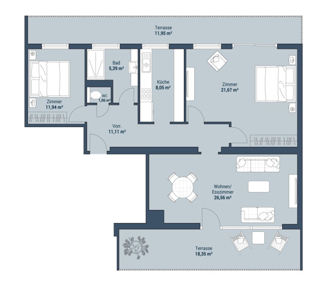 2 Terrassen – perfekt für Frühstück in der Sonne oder entspannte Abende im Freien