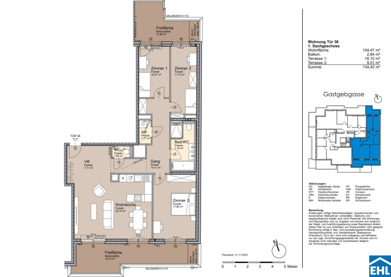 Parkett, Fliesen, Erdwärme, Fußbodenheizung, Personenaufzug, Nordbalkon, Südbalkon, Badewanne, Dusche, Tiefgarage