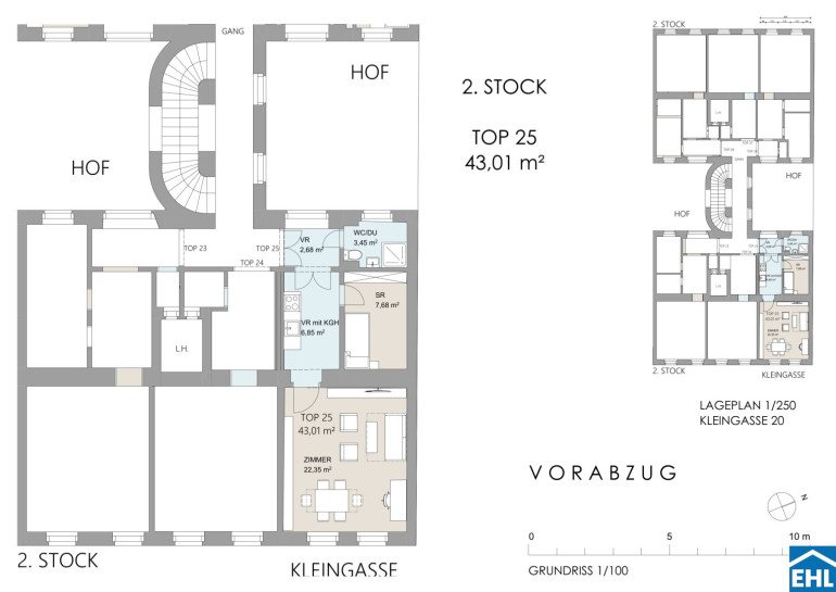 Besonders hervorzuheben ist die außergewöhnlich ruhige Wohnatmosphäre, von der in dieser Gasse nicht nur die hofseitigen Räume profitieren.