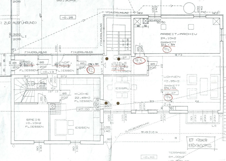 - Fußbodenheizung in allen verfliesten Räumen (Vorraum, Flure, Bäder, WC’s, Saunabereich)