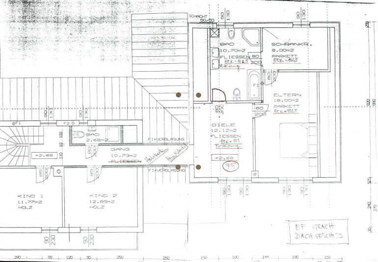 Elternschlafzimmer mit Schrankraum und Bad, zwei Kinderzimmer, weiteres Bad, Gang und Diele