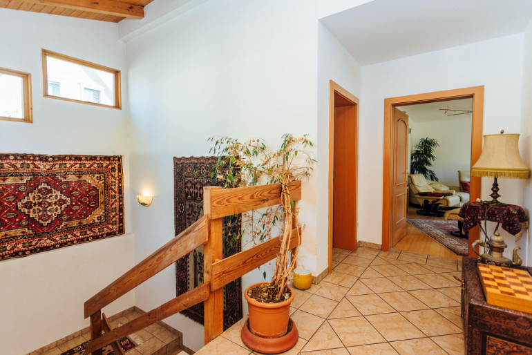 Das Haus präsentiert sich im Erd- und Dachgeschoss in sehr gepflegtem und einladendem Zustand. Hochwertige Holz- und Fliesenböden, Holzrahmen-Isolierfenster sowie liebevoll gestaltete Details schaffen ein warmes, wohnliches Ambiente mit Wohlfühlcharakter.