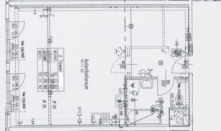 Wohnnutzfläche beträgt 57,45 m² inkl. Loggia.