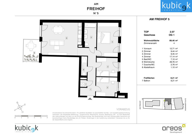 Das Projekt Am Freihof 5 / Kagraner Platz 50 vereint die Vorzüge urbanen Wohnens mit der Nähe zur Natur. Mit exzellenter Verkehrsanbindung, umfassender Infrastruktur und einem vielfältigen Freizeitangebot bietet dieser Standort alles, was modernes, komfortables und nachhaltiges Stadtleben auszeichnet. Ein Ort, an dem sich Lebensqualität, Mobilität und Erholung harmonisch verbinden – ein Zuhause mit Zukunft.