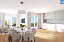 Großzügige bodentiefe Fensterfronten in edlem Kunststoff-Alu lassen das Licht herein, klare Linien und hochwertige Materialien sorgen für zeitlose Eleganz. Jede Wohnung wurde so geplant, dass Sie Funktionalität und Wohlfühlcharakter vereint. Ob offener Wohn-Ess-Bereich oder Rückzugsort zum Entspannen – hier findet jeder seinen Platz. Extensiv begrünte Flachdächer verleihen der Wohnanlage ein harmonisches, natürliches Erscheinungsbild.