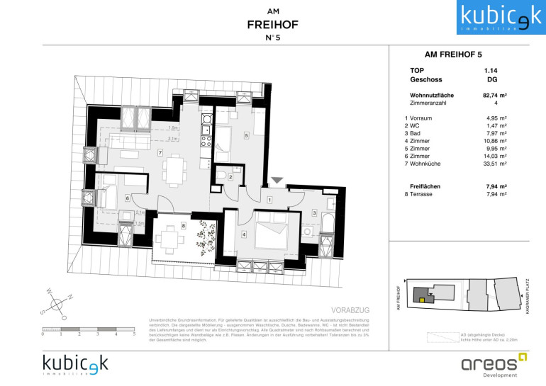 Das Projekt Am Freihof 5 / Kagraner Platz 50 vereint die Vorzüge urbanen Wohnens mit der Nähe zur Natur. Mit exzellenter Verkehrsanbindung, umfassender Infrastruktur und einem vielfältigen Freizeitangebot bietet dieser Standort alles, was modernes, komfortables und nachhaltiges Stadtleben auszeichnet. Ein Ort, an dem sich Lebensqualität, Mobilität und Erholung harmonisch verbinden – ein Zuhause mit Zukunft.