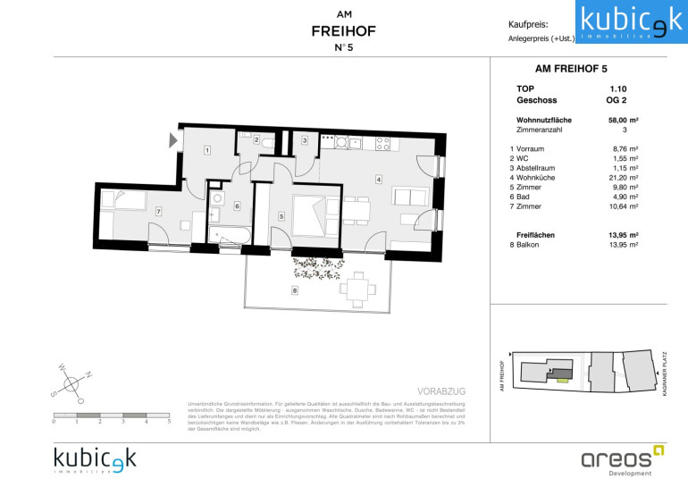 Das Projekt Am Freihof 5 / Kagraner Platz 50 vereint die Vorzüge urbanen Wohnens mit der Nähe zur Natur. Mit exzellenter Verkehrsanbindung, umfassender Infrastruktur und einem vielfältigen Freizeitangebot bietet dieser Standort alles, was modernes, komfortables und nachhaltiges Stadtleben auszeichnet. Ein Ort, an dem sich Lebensqualität, Mobilität und Erholung harmonisch verbinden – ein Zuhause mit Zukunft.