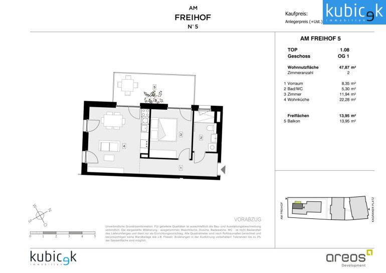 Das Projekt Am Freihof 5 / Kagraner Platz 50 vereint die Vorzüge urbanen Wohnens mit der Nähe zur Natur. Mit exzellenter Verkehrsanbindung, umfassender Infrastruktur und einem vielfältigen Freizeitangebot bietet dieser Standort alles, was modernes, komfortables und nachhaltiges Stadtleben auszeichnet. Ein Ort, an dem sich Lebensqualität, Mobilität und Erholung harmonisch verbinden – ein Zuhause mit Zukunft.