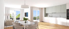 Großzügige bodentiefe Fensterfronten in edlem Kunststoff-Alu lassen das Licht herein, klare Linien und hochwertige Materialien sorgen für zeitlose Eleganz. Jede Wohnung wurde so geplant, dass Sie Funktionalität und Wohlfühlcharakter vereint. Ob offener Wohn-Ess-Bereich oder Rückzugsort zum Entspannen – hier findet jeder seinen Platz. Extensiv begrünte Flachdächer verleihen der Wohnanlage ein harmonisches, natürliches Erscheinungsbild.