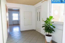 Der straßenseitige Altbestand aus den 1970er-Jahren strahlt klassischen Charme aus, während der 1999 angebaute hofseitige Teil mit saniertem Dach modernen Wohnkomfort bietet. Die Kunststofffenster und die Gasthermenheizung sorgen für zeitgemäße Ausstattung. Über den überdachten Eingangsbereich mit Pergoladach gelangen Sie in den zentralen Vorraum, von dem aus sämtliche Räume (bis auf das Wohnzimmer) bequem begehbar sind. Ein praktischer Abstellraum, das Badezimmer mit Dusche, WC, Waschbecken und Waschmaschinenanschluss, sowie die separate Küche mit Platz für einen Esstisch schaffen ein funktionales, freundliches Wohnumfeld.