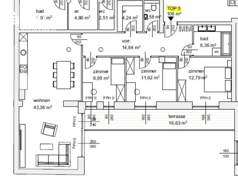 Von allen drei Schlafzimmern aus haben Sie Zugang zum Balkon, was den Wohnkomfort zusätzlich steigert. Das Badezimmer ist gut dimensioniert und bietet sowohl eine Dusche als auch eine Badewanne, sodass für jeden Bedarf gesorgt ist. Ein zusätzliches Gäste-WC sorgt für praktischen Komfort.