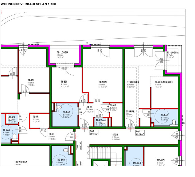 Im Kellergeschoß befinden sich zugeordnete Abstellräume, 23 TG-Stellplätze, Technikräume, ein Wasch- und Trockenraum sowie eine Abstellmöglichkeit für Kinderwägen.