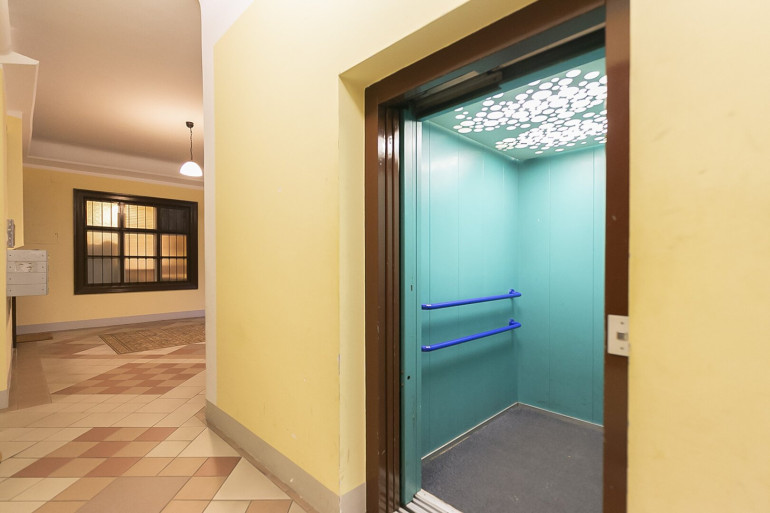 Parkett, Fliesen, Gas, Etagenheizung, Einbauküche, Personenaufzug, Bad mit Fenster, Badewanne, Garage