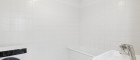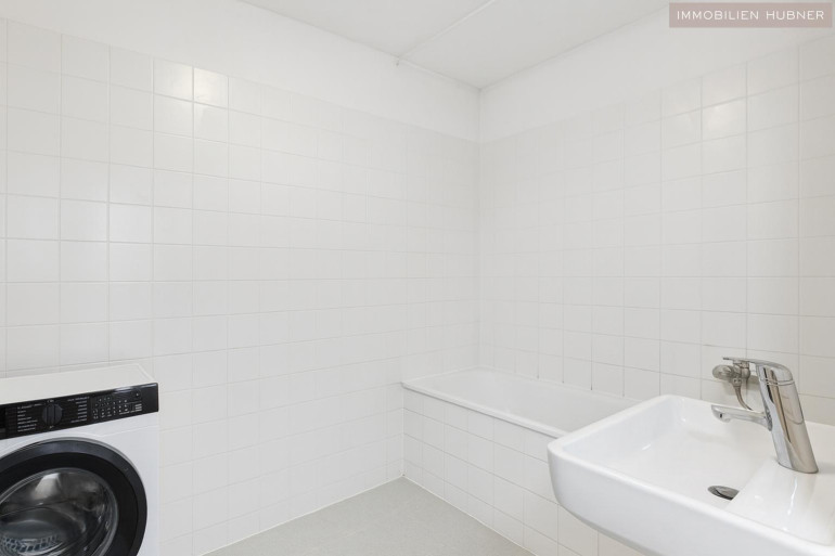• Badezimmer mit Badewanne, Waschbecken und Waschmaschinenanschluss