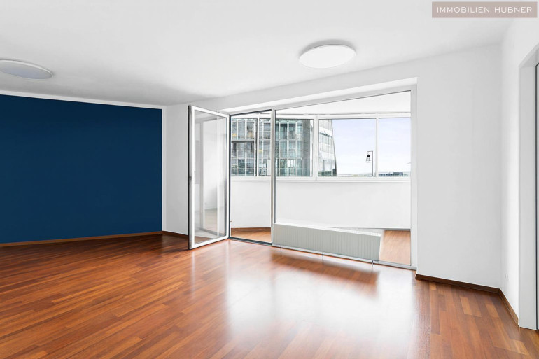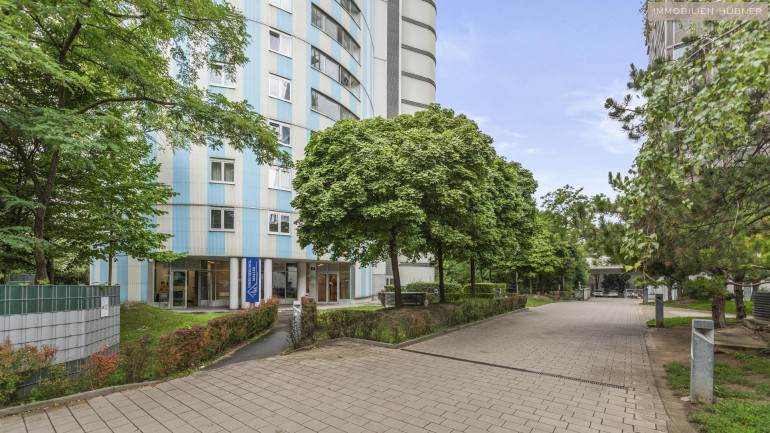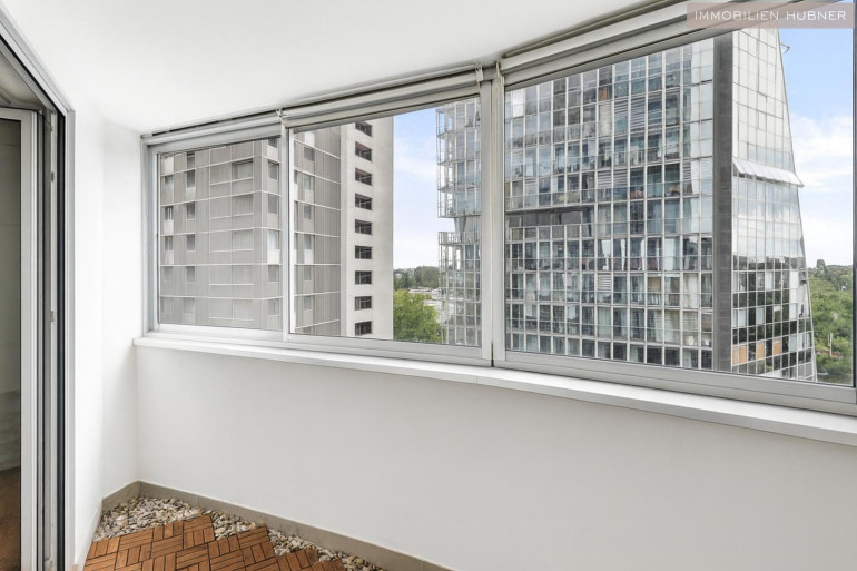 Sie befindet sich im 7. OG und verfügt über einen wunderbaren Weitblick mit seitlicher Sicht auf die Alte Donau.