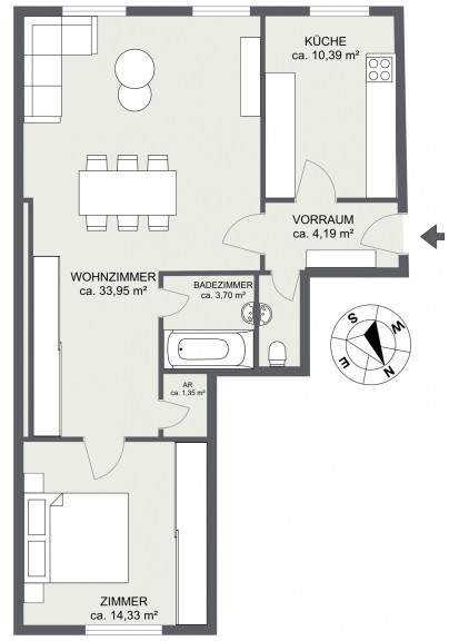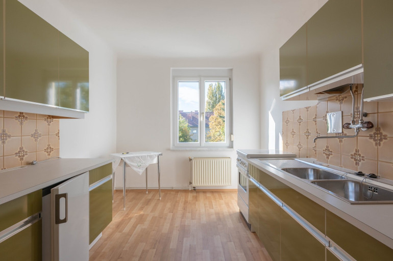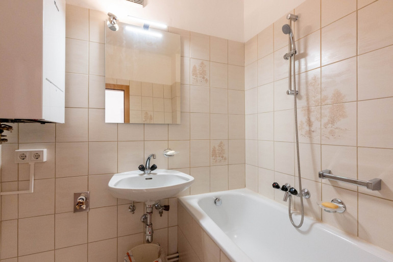 Laminatboden, Fliesen, Etagenheizung, Badewanne