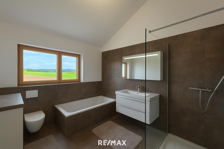 Das Haus ist als Plus-Energie-Haus in Massivholzbauweise errichtet und punktet mit äußerst niedrigen Betriebs- und Heizkosten. Die Sole-Wasser-Wärmepumpe sorgt über die Fußbodenheizung für behagliche Wärme und kann in den Sommermonaten auch zur Kühlung genutzt werden. Eine leistungsstarke Photovoltaikanlage mit 6 kWp ermöglicht unbeschränkte Einspeisung und reduziert die Strom- und Heizkosten nachhaltig.