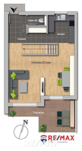• Erdgeschoss: Ein heller, offener Wohn-, Ess- und Küchenbereich bildet das Herzstück des Hauses. Ergänzt wird das Erdgeschoss durch ein Gäste-WC sowie einen einladenden Vorraum.