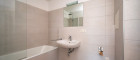 Badezimmer: ausgestattet mit Badewanne, Wandspiegel und Beleuchtung, Waschmaschinen-Anschluss