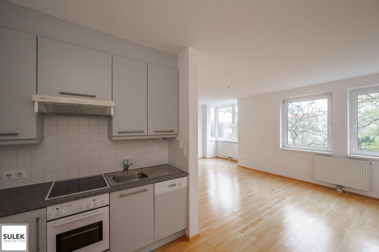 - eingerichtete Küche, Parkettboden, Blick auf den Schubertpark