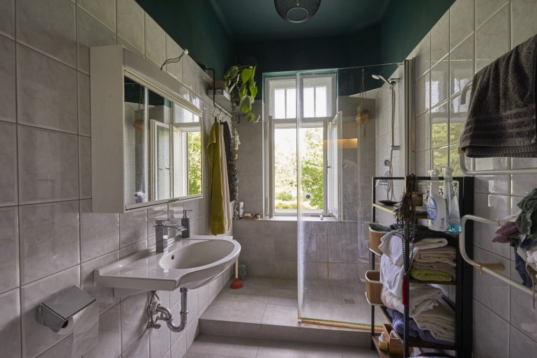 Der Naturstein-Sockel verleiht der Villa eine solide Basis, darüber präsentiert sich die Fassade glatt verputzt und elegant strukturiert. Die originalen Kastenfenster mit versprossten Oberlichten, Sandsteinrahmungen, Jalousieläden und markanten Sohlbänken erzählen vom architektonischen Feingefühl vergangener Zeiten. ✨