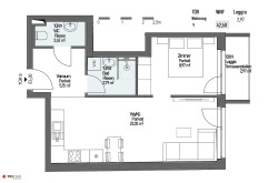 Top 17: WNFL ca. 66,44 m² (3 Zimmer) + Terrasse ca.6 m² + ER (Keller) ca. 2 m²