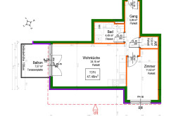 TOP 6: ca. 47,50 m² (2 Zimmer) + Balkon ca. 7,57 m², Kaufpreis: EUR 329.000