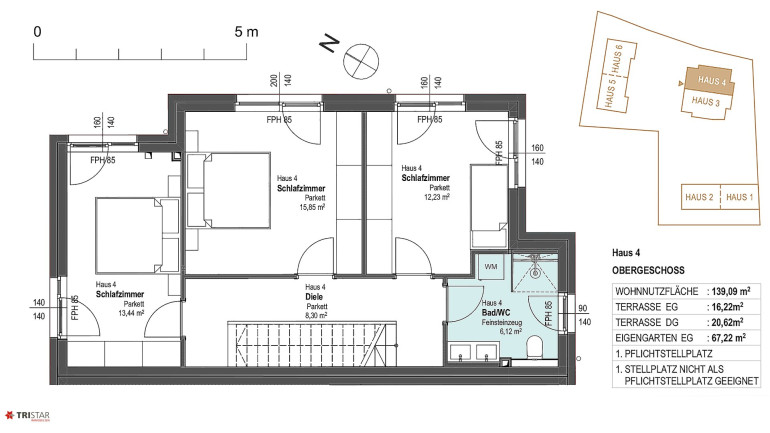 - Wohnnutzfläche: ca. 139,09 m², 5 ZIMMER