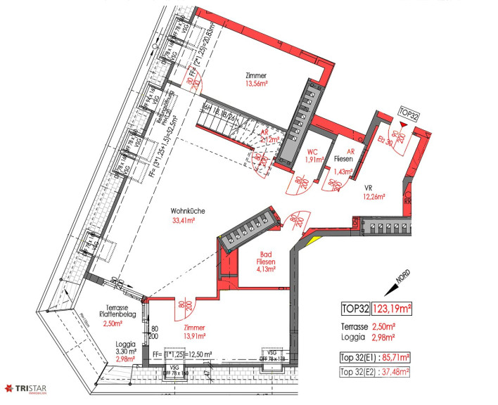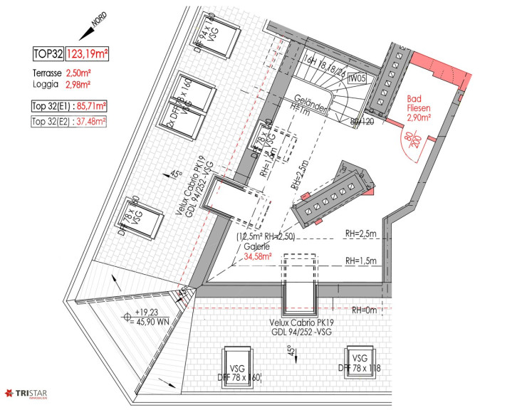- Top 32: Wohnfläche ca. 123,19 m² + Loggia/Terrasse ca. 5,50 m², EUR 949.000