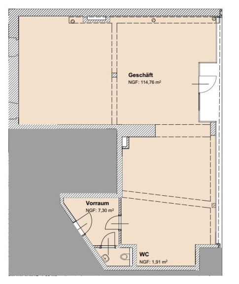 Mit einer großzügigen Fläche von 124 m² im Erdgeschoss haben Sie ausreichend Platz, um Ihre Visionen zu realisieren. Die Räumlichkeiten sind flexibel gestaltbar, sodass Sie Ihre Verkaufsfläche ganz nach Ihren Bedürfnissen anpassen können. Ob Sie ein trendiges Modegeschäft oder ein innovatives Dienstleistungsangebot planen – hier sind Ihrer Kreativität keine Grenzen gesetzt!