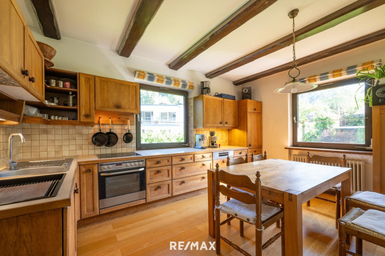Das Haus wurde 1975 in massiver Bauweise errichtet und über die Jahre in Teilen erneuert. Die Decke der Garage wurde saniert und brachte eine neue Terrasse mit sich. Erst letztes Jahr wurde ein Zimmer umfassend renoviert – ein Vorgeschmack auf das Potenzial dieses Hauses.