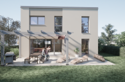 Die modernen Eigenheime in nachhaltiger Holzmassivbauweise erfüllen den Niedrigstenergiestandard und überzeugen durch durchdachte Grundrisse, helle Räume und niedrige Energiekosten.