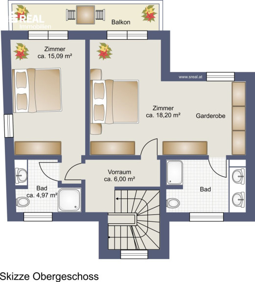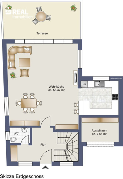 * Raumhöhe von 2,75 m - luftiges, großzügiges Raumgefühl