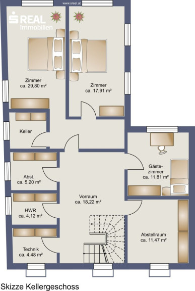 Untergeschoß / Gartenebene (ca. 100 m²):