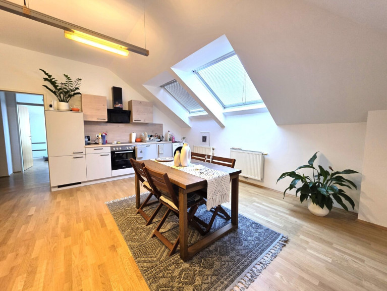 Diese helle Dachgeschosswohnung mit 75,01 m² befindet sich im 2. Stock eines gepflegten Wohnhauses und überzeugt durch ihren besonderen Charme und gemütliche Dachfenster, die für eine warme, einladende Atmosphäre sorgen. Die geschmackvolle Einbauküche lädt zum Kochen ein. Der großzügige Wohn/Essbereich überzeugt mit seinem offenen Raumgefühl.