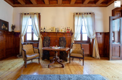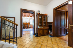 Die Raumaufteilung ist großzügig gestaltet und die Stockwerke sind in Splitt-Level-Bauweise eingeteilt. Im Erdgeschoß findet man einen großen Salon, ein Wohnzimmer, eine geschlossene Loggia, eine Küche und Sanitärräume. Im ersten Zwischengeschoss findet man ein großes Schlafzimmer, im Obergeschoss zwei weitere Schlafzimmer, ein Wohnzimmer, eine Bibliothek, ein Bad mit WC, im zweiten Zwischengeschoss ein Gästezimmer mit separiertem Wannenbad und im Dachgeschoss noch ein zusätzliches Schlafzimmer. Wenn noch weiterer Platzbedarf gewünscht ist, wären zusätzlich 60m² Dachboden ausbaubar.