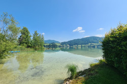 Auf der Vorderseite der Villa liegt der Badeplatz direkt am Mondsee, nur durch die Straße Richtung St. Gilgen getrennt. Dieser vorgelagerte, private Badeplatz mit ca. 340m² weist eine Boje direkt am Mondsee auf und ist ebenso im Preis beinhaltet.