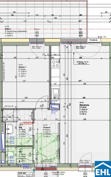Parkett, Fliesen, Alternativ, Fußbodenheizung, Einbauküche, Wohnküche / offene Küche, Personenaufzug, Dusche