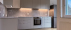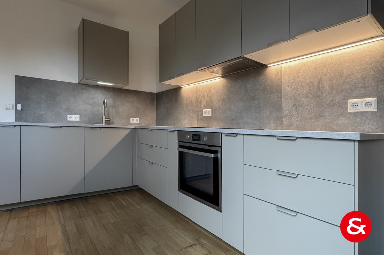 Die, in den Wohnsalon integrierte, nagelneue Küche mit Tageslicht und direktem Ausgang auf die kleinere Gartenterrasse, ist mit Marken-Elektrogeräten ausgestattet.