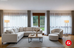 Raumhohe Fenster und auch Türen, gerade Linien zählen zu den Attributen dieses Hauses, gebaut in den siebziger Jahren des vergangenen Jahrhunderts und in einem hervorragenden Zustand.