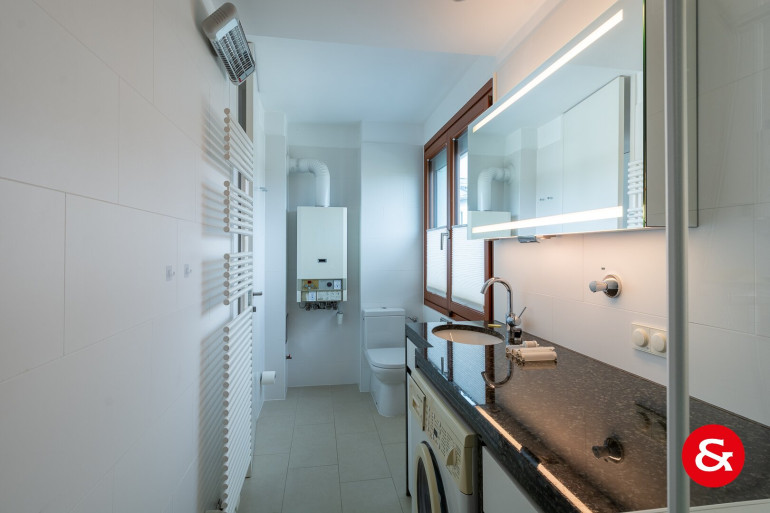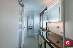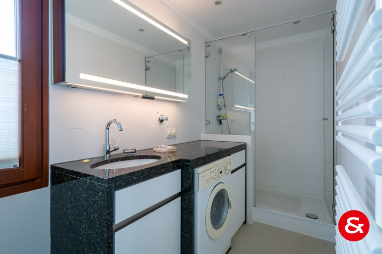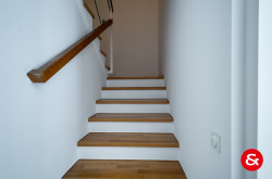 Sämtliche Räume sind mit Parkettböden ausgestattet, die Nassräume und die Küche komplett verfliest. Moderne, aus Vollholz gestaltete Türen und Fenster runden die Stilsicherheit dieses Hauses ab.
