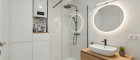 Fliesen, Teppichboden, Elektro, Heizofen, Einbauküche, Personenaufzug, Ostbalkon, Dusche