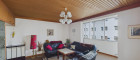 Großzügiges Wohnzimmer mit verbauter Loggia, die zusätzlichen Wohnraum bietet