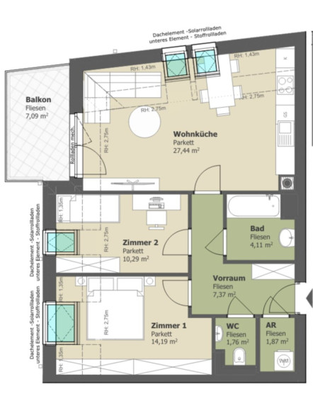 | Art: | Wohnung - Dachgeschoß |
