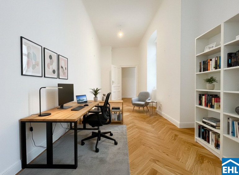 - Zwei großzügige, straßenseitige Zimmer – Küche mit Essbereich sowie Wohnzimmer