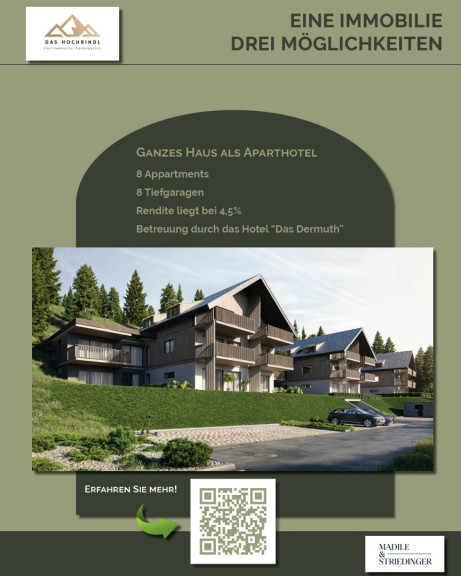 Zweitwohnsitz. Rückzugsort. Inmitten der atemberaubenden Kärntner Nockberge, auf der sonnigen Hochrindl, entstehen drei Häuser, mit je 8 Wohnungen. Mit dem Neubauprojekt "Das Hochrindl" wird in einer der schönsten Alpenregionen Österreichs - der Hochrindl - eine Wohnanlage verwirklicht, welche sich sanft und optimal in die umliegende Berglandschaft einfügt. Natur pur genießen direkt vor der Haustür - beim Wandern oder Skifahren. Hier findet Ruhe und Sport in voller Vielfalt statt. Wohnungsgrößen von 40 m² bis 88 m² Verkaufspreise ab 318.000 EURBeschreibung der Immobilie